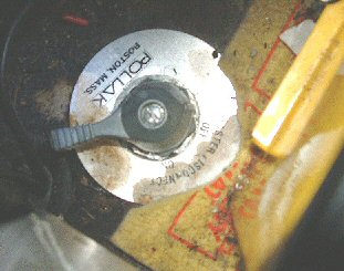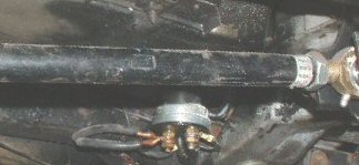There are a number of switch types on the market. The one shown (on right) is made by Pollak and is designed to be wall mounted. In this case it was mounted through the floor of the battery box. Sitting in the dark recess of the battery box it is very difficult to see unless you know what you are looking for. Access is not that easy but after some experience it becomes fairly painless. To seal the floor opening a large rubber washer was placed over the switch where it mates with the underside of the floor. The switch cuts off the ground wire link to the frame. On one pole is the ground wire from the battery. A second smaller wire is run back into the interior through a 20 amp breaker and then to ground. This keeps the circuit alive for the radio, alarm and so on. In the event of a short circuit or an attempt to start the car with the switch off the breaker will blow requiring a manual reset. The second pole has two cables running to the frame for ground. Twin cables were used as it was easier to route than a single heavier cable. |
