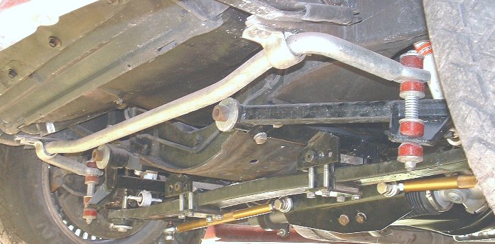 | To get the rear in order the standard struts were replaced with smart struts from VB & P, plus an Addco (5/8") sway bar and new KYB shocks. This really made a big difference in the way the back handled. The original poly bushings on the sway bar were swapped out for rubber later. Even when well greased the poly bushings squeaked. |